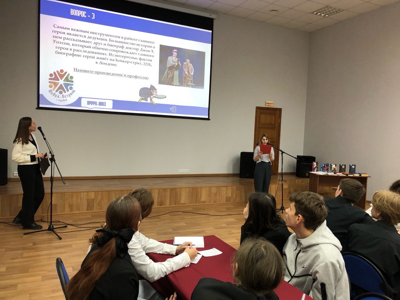 Также школьники приняли участие в «ПРОФИ-КВИЗе»: преодолели 5 раундов, включающих по 5 вопросов из разных областей: литература, история, музыка, кинематограф, где речь шла о профессиях. Кроме того, для учащихся была проведена презентация итогов проекта и продемонстрированы видео-ролики участников летнего погружения.