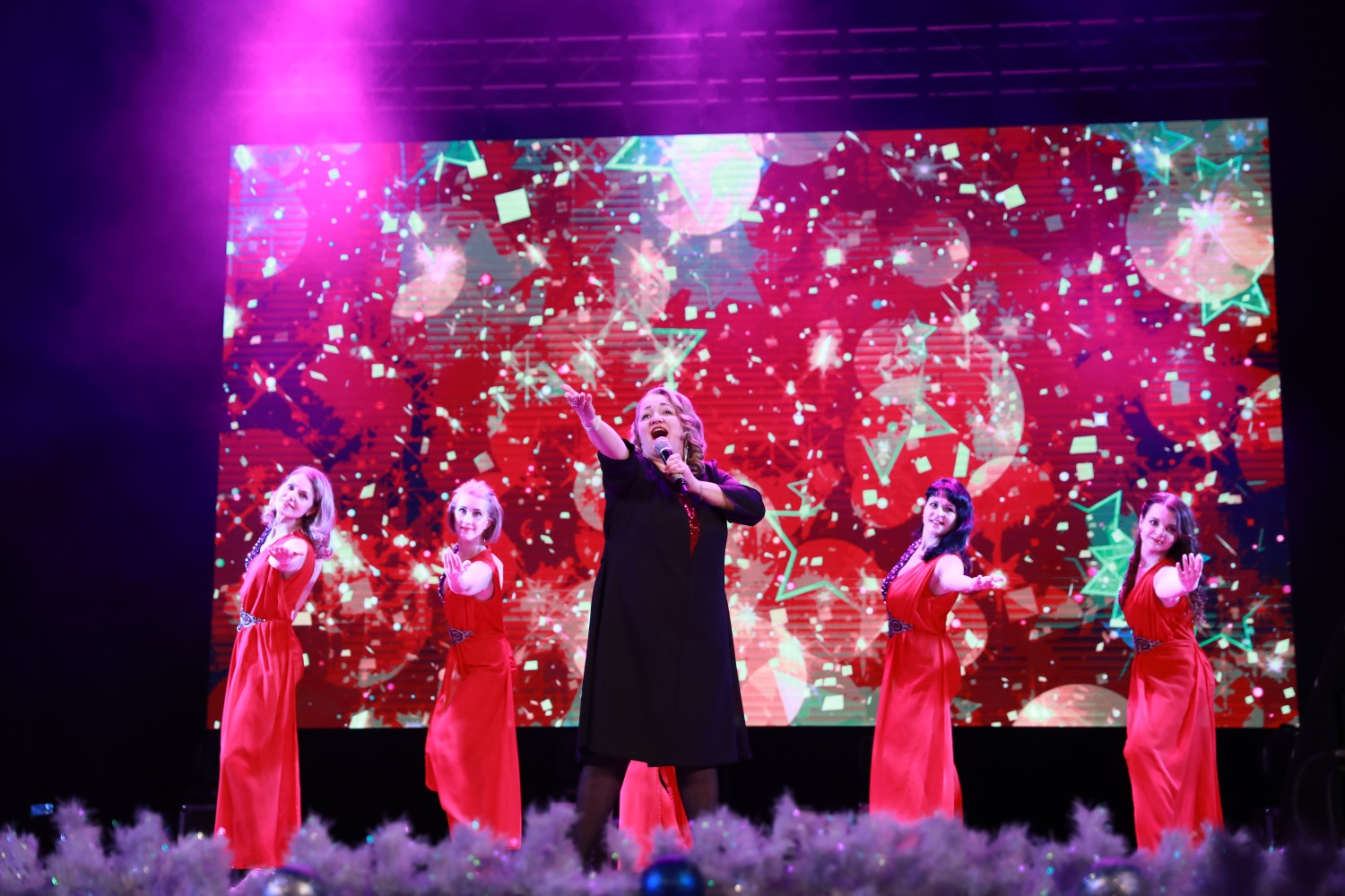 После финальной песни «Новогодние игрушки», которую исполнили солисты и все участники концерта, от имени руководства предприятия артистов и зрителей поблагодарил заместитель генерального директора предприятия по материально-техническому снабжению и комплектации оборудования Александр Марков.