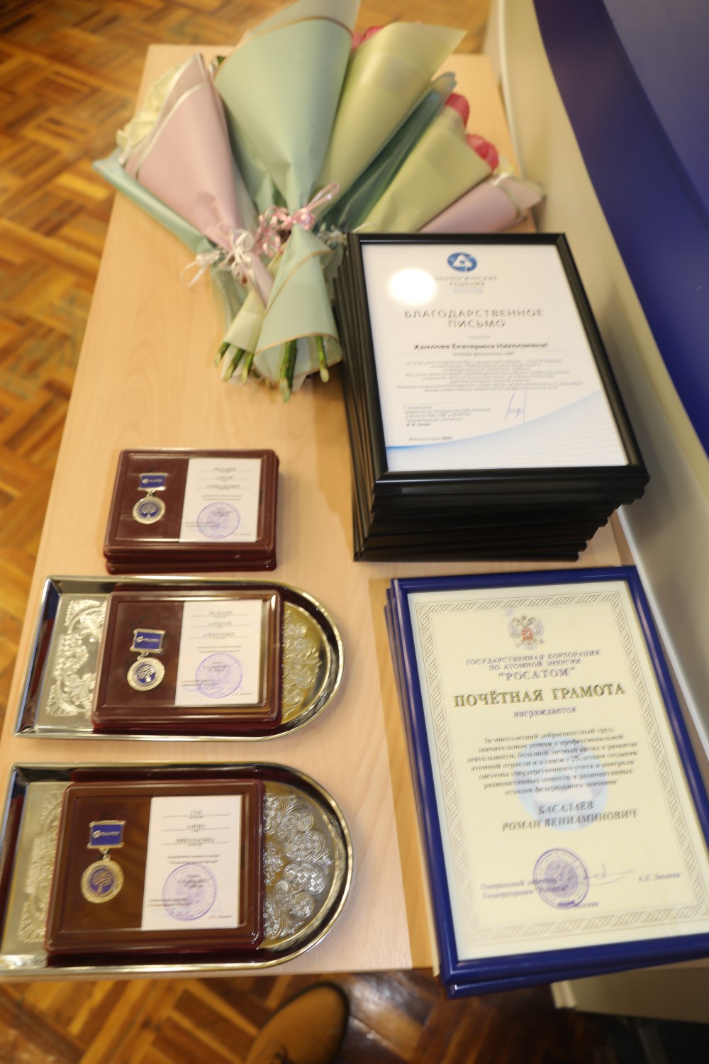 В конце встречи сотрудникам предприятий были вручены благодарности и почётные грамоты Госкорпорации, знак отличия «За развитие волонтёрства», юбилейные медали «80 лет атомной промышленности». Руководитель дивизиона Василий Тинин тепло поздравил железногорских атомщиков и их семьи с наступающим Новым годом и Рождеством.