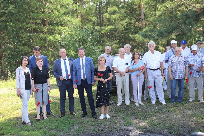 В память о подвиге старшего поколения все присутствующие возложили красные гвоздики к монументу «Строителям города».