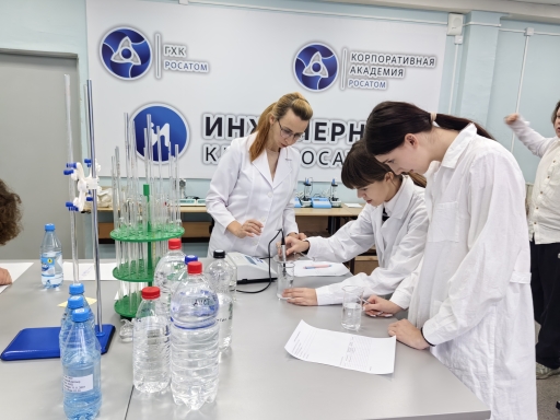 Специалисты-практики центральной заводской лаборатории (ЦЗЛ) Горно-химического комбината (предприятие Госкорпорации «Росатом», дивизион «Экологические решения») провели первый практический урок для учеников 8 классов в открывшемся в сентябре при поддержке ГХК инженерном классе «Лаборатория химического анализа» в школе №97. Занятие вели начальник аналитической лаборатории ОДЦ Юлия Кудрина и руководитель аналитической группы этой же лаборатории Елена Красных.